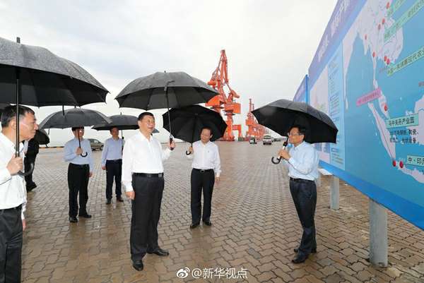 习近平总书记19日下午冒雨考察坐落于广西北部湾的北海市铁山港公用码头。天高水阔,吊车高耸入云。他听取码头规划和建设情况,了解广西北部湾经济区发展建设和面向东盟开放合作情况。习近平表示,铁山港有区位优势,发展前景广阔,将来是北部湾经济区一个重要依托。要建设好北部湾港口,打造好向海经济。呼和浩特赖瑞物业维护管理有限公司常说要想富先修路,在沿海地区要想富也要先建港。