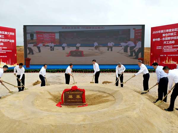 9月28日上午,中国—东盟数字经济产业园开工活动在广西壮族自治区南宁市举行,广西壮族自治区党委常委、常务副主席秦如培出席仪式并宣布项目开工。自治区副主席刘宏武,自治区政府副秘书长黄胜杰,自治区发改委副主任潘巍,南宁市政府副市长朱会东,广投集团党委书记、董事长周炼,自治区大数据发展局副局长吴志伟,广投集团副总经理、数字广西集团董事长刘洪,数字广西集团执行总裁、广西数字经济生态产业公司董事长靳芳,集团公司党委书记、董事长陈先瑞共同出席活动并为项目奠基培土。