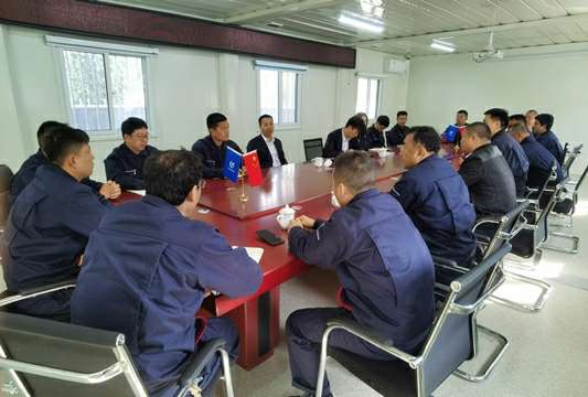 在随后的座谈中,王建红总经理向项目一线员工进行了亲切慰问,对大家的工作给予充分肯定,并指出下一步工作方向。他表示,项目全员一定要利用好各方优势开展工作,年轻员工要多去施工现场学习,了解各种专业施工工艺,把理论与实践结合运用,努力将自己锻炼成为复合型人才。